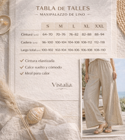 Nuestro maxipalazzo de lino es fresco, liviano y cómodo, pensado para usar todo el día sin pasar calor y sin resignar estilo.